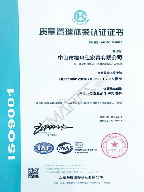 福瑪仕9001質量管理體系認證證書