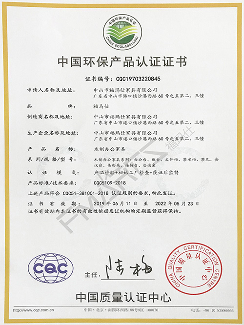 福瑪仕CQC中國環保產品認證證書